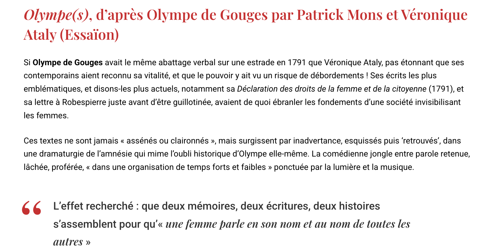 Revue de presse Olympe(s), merci pour ces beaux mots !